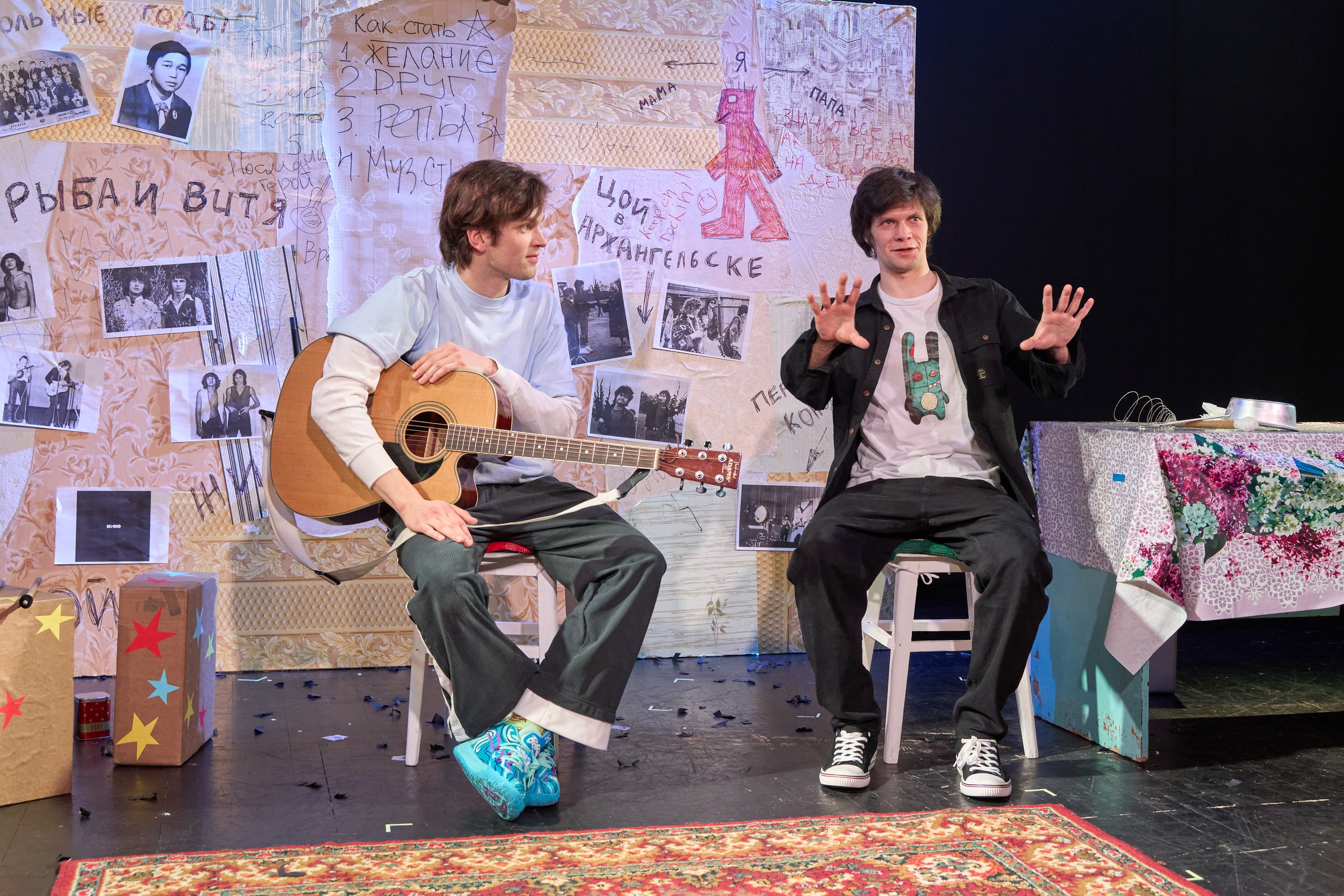 Спектакль «Витя и Рыба»* — это трогательная и вдохновляющая история о первых шагах мальчика Вити на пути в мир творчества. Погрузившись в атмосферу конца 70-х — начала 80-х годов, мы отправляемся в детство Вити, который, еще не зная, что станет символом целой эпохи, открывает для себя музыку и свою мечту. Это история о поисках, дружбе и поддержке, которая становится основой для его будущего пути. В центре повествования — близкие отношения с друзьями, о которых герой всегда говорил с благодарностью, и влияние окружающего мира, который дал ему силы для того, чтобы не сдаваться.