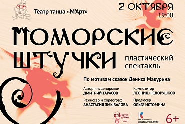 В новой постановке «Поморские штучки» театр танца «М’Арт» соединяет современный танец со сказками современного северного писателя Дениса Макурина и поморскими традициями. В этот раз коллектив хореографа Анастасии Змываловой создает спектакль для семейного просмотра. С помощью понятного в любом возрасте языка танца и пластики эта постановка познакомит современных детей с бытом северной деревни, в котором практичность, любовь к труду и простой жизненный уклад соседствуют с верой в чудесное.