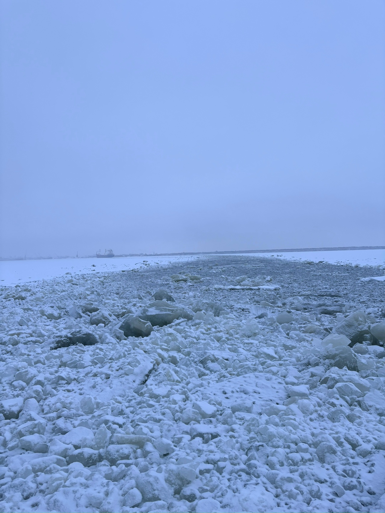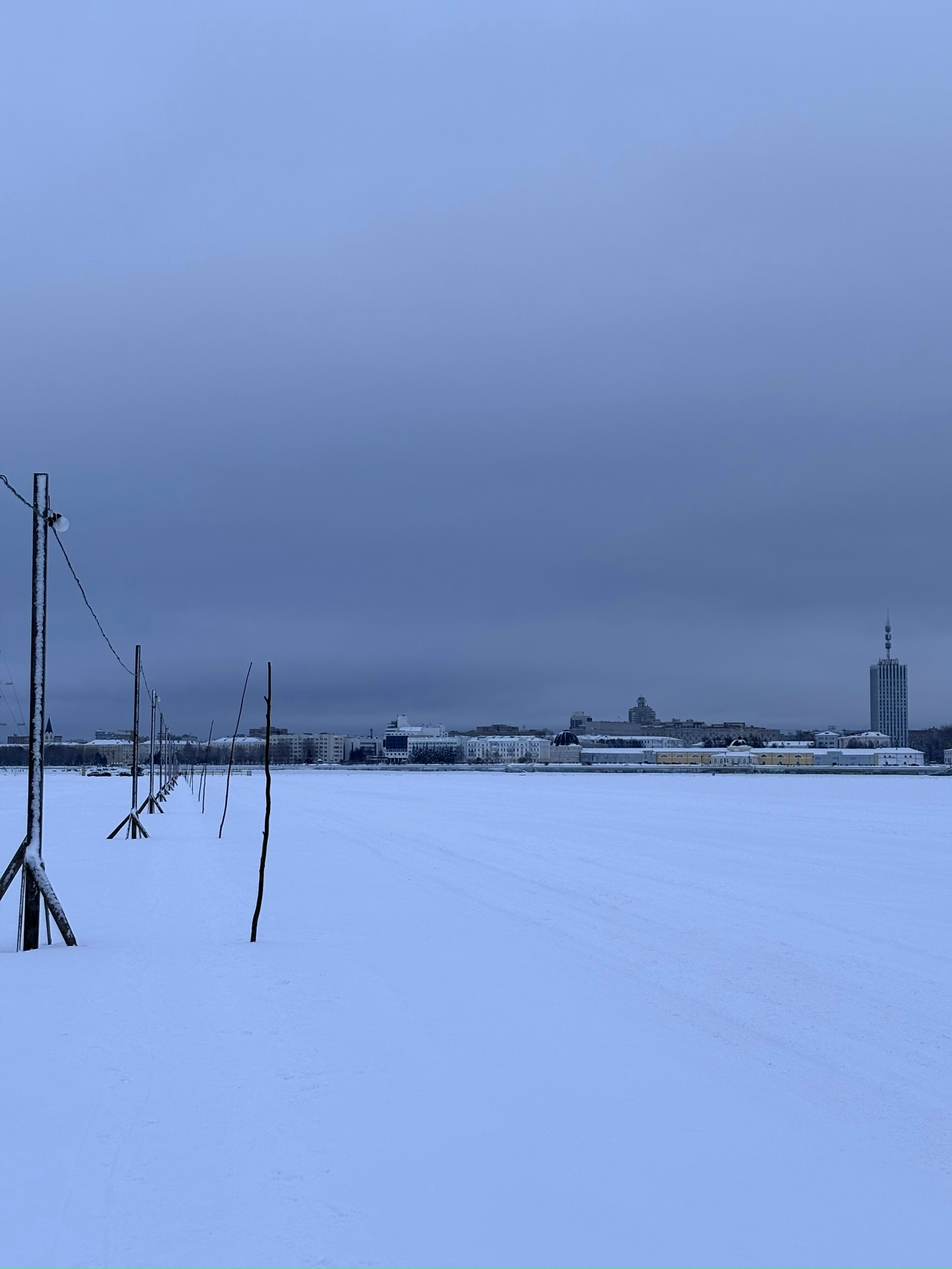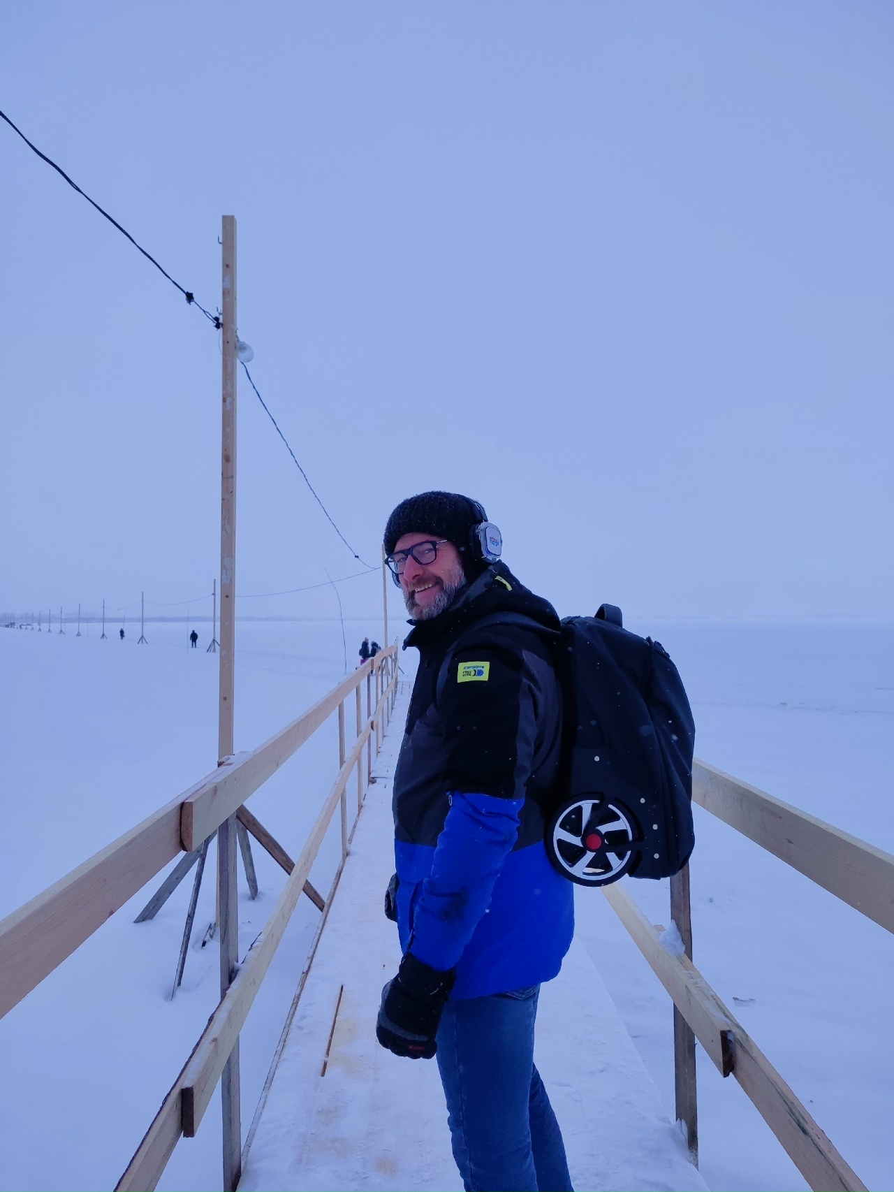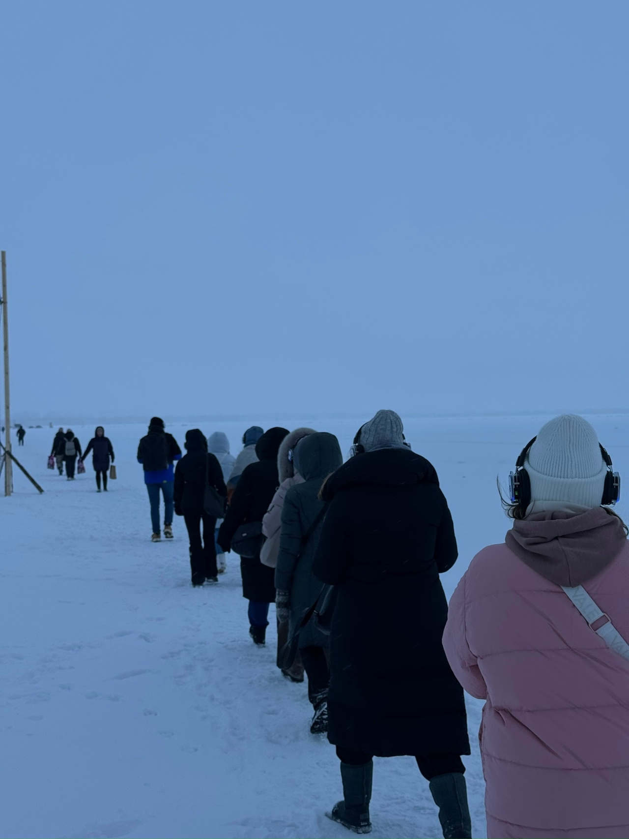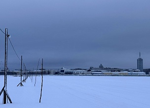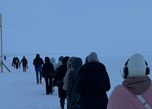 Маршрут - от центрального входа Архдрамы по пешеходной ледовой переправе на остров Кего и обратно