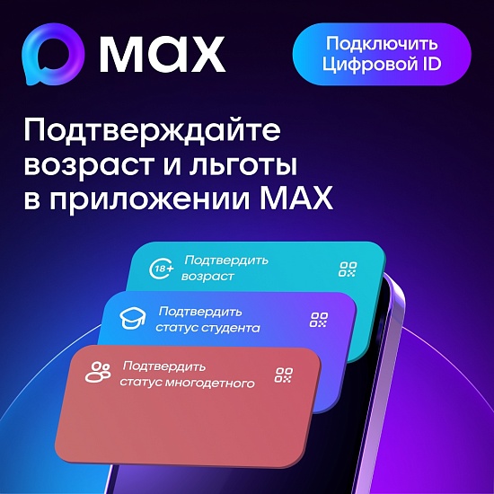 С 24 по 28 февраля льготным категориям граждан, приобретающим билеты через цифровой сервис МАХ на все спектакли, кроме премьерных - дарим скидку 50%!